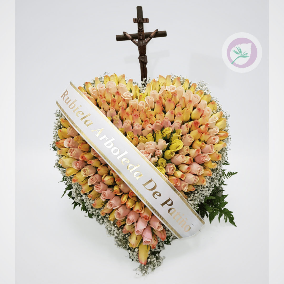 Ramo funebre en pedestal para expresar condolencias y honrar la memoria de ese ser que ha partido – FloristerĂa en Medellin y Rionegro.