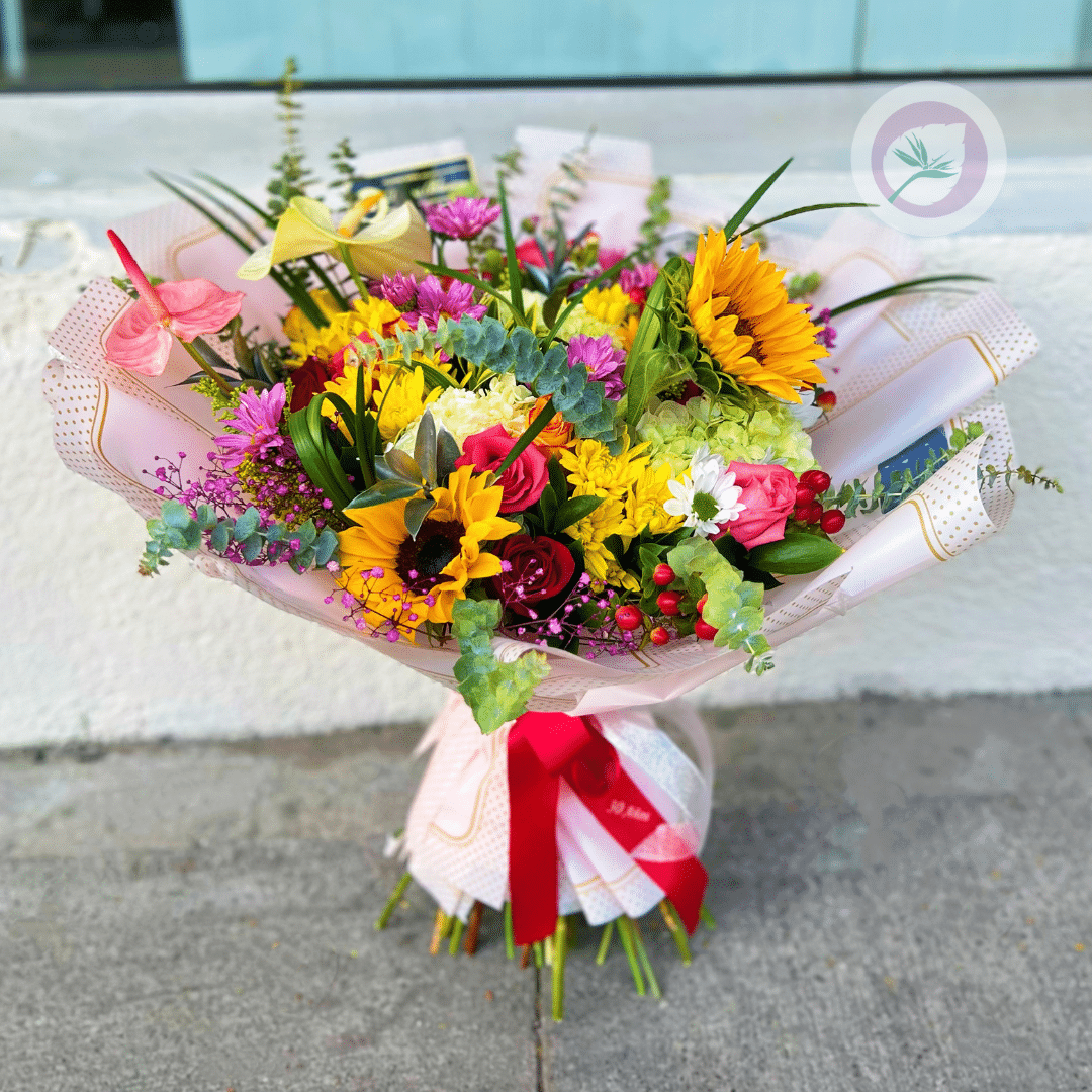 Regala un hermoso ramo primaveral variado con girasoles, rosas, margaritas y mucho más en medellín   – Tenemos los arreglos ideales para sorprender a esas personas importantes – En Floristería Hojas Blancas tenemos cobertura en Medellin, Rionegro, La Ceja, Marinilla, Bello, El Poblado, Laureles, Itagüi, entre otros municipios del área metropolitana y oriente antioqueño. Sorprende en Amor y Amistad