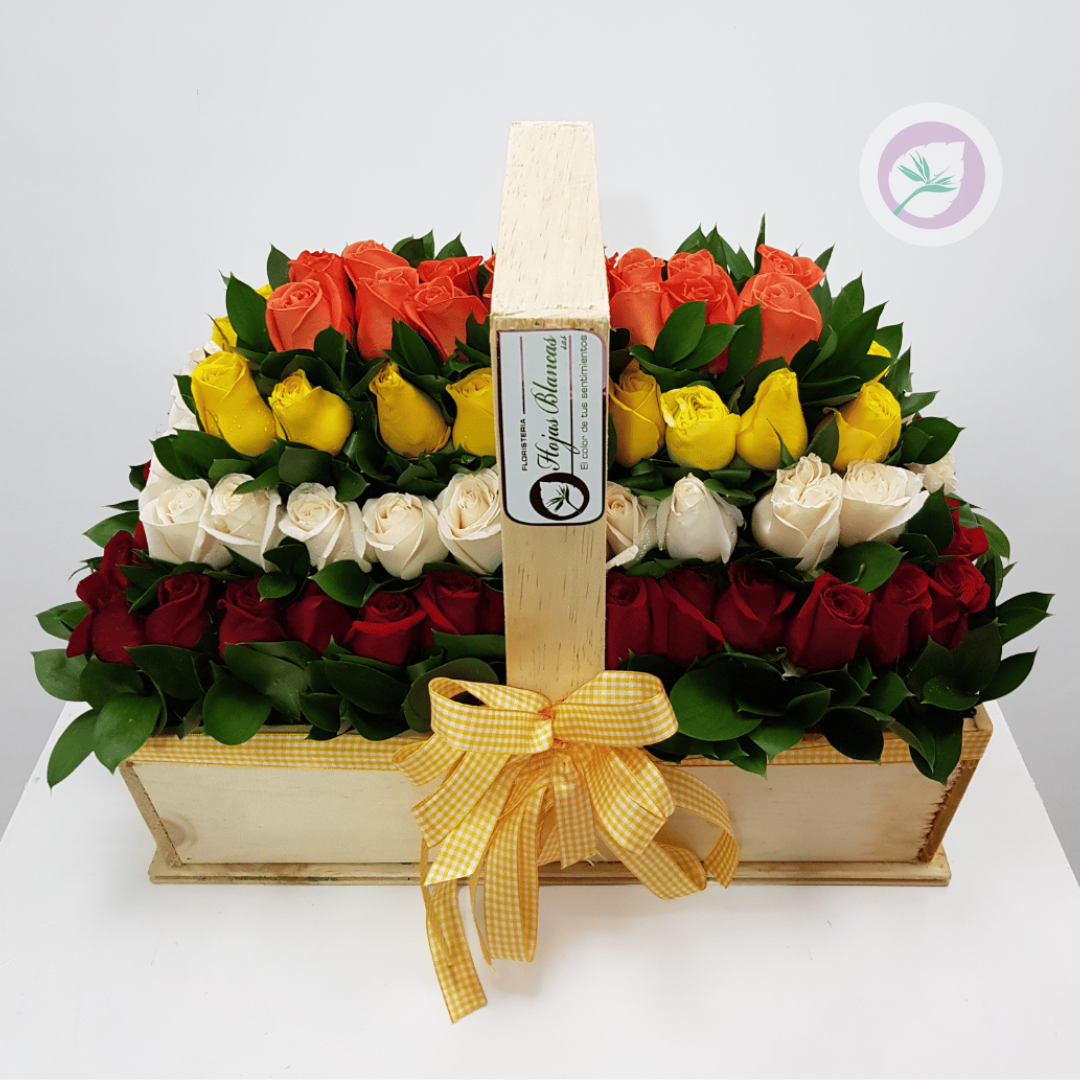 Regala una bella canasta de rosas de colores . Tenemos los arreglos hermosos para tu persona especial.